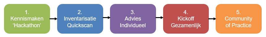 - Management: aanmaken secretariaat, planning, channel in community platform en fileshare omgeving. Start Community of Practice.